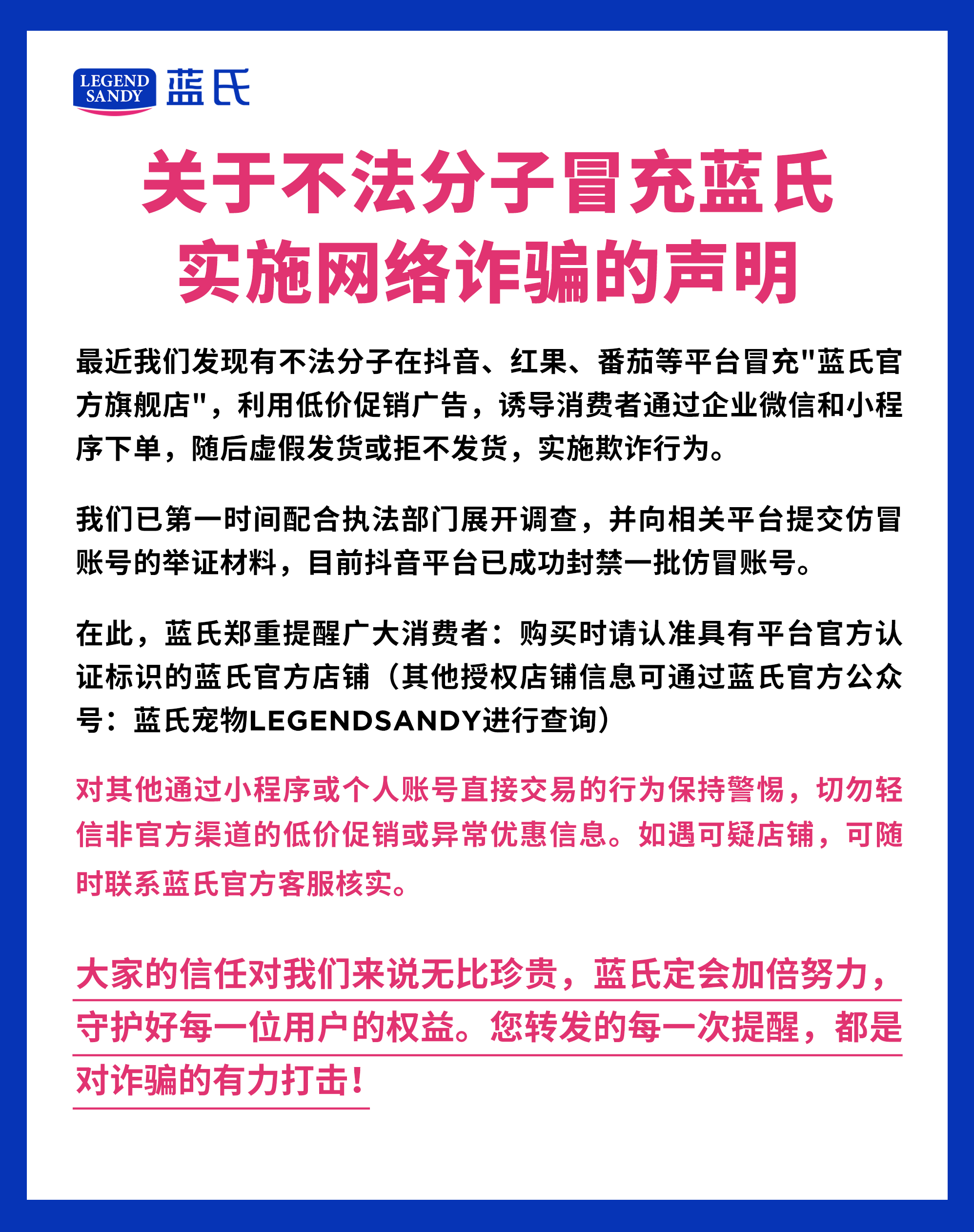 认准蓝氏官方渠道,谨防上当受骗!