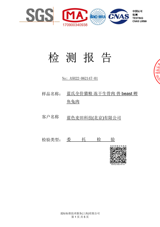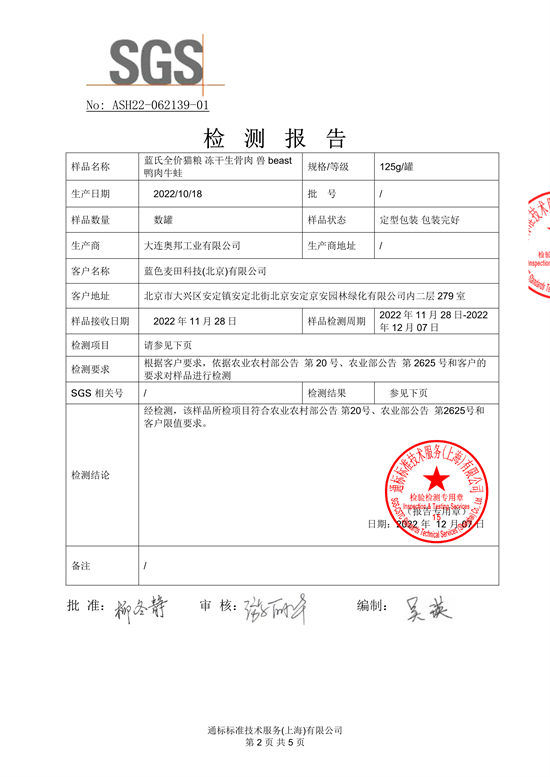 荒野猎兔中大型犬粮质检报告