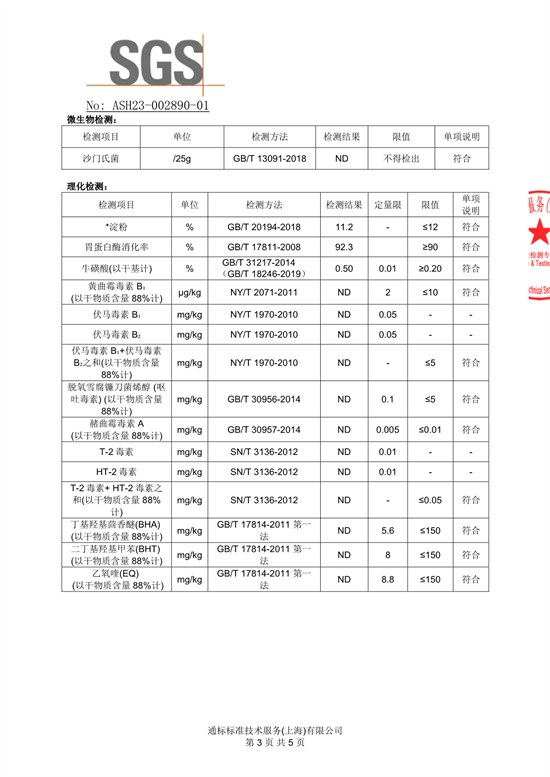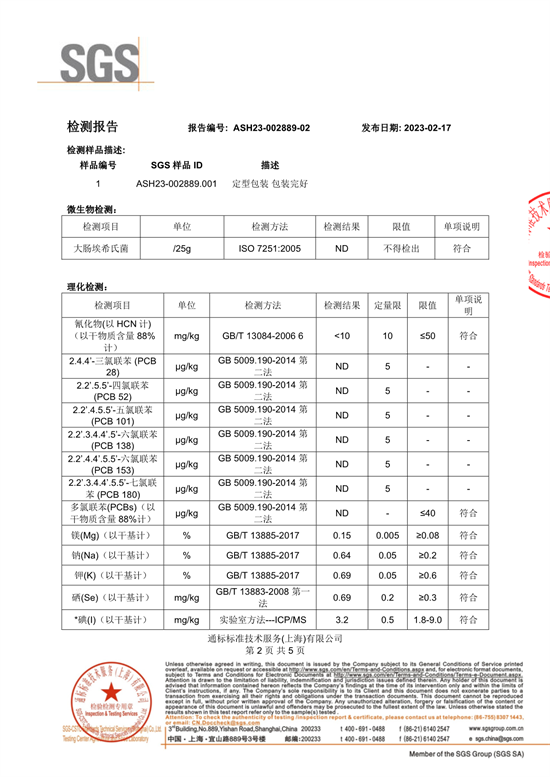 包装值和毒素检测报告