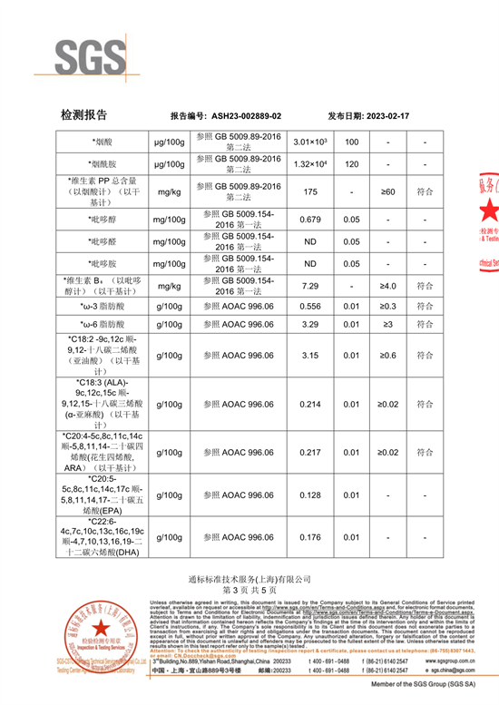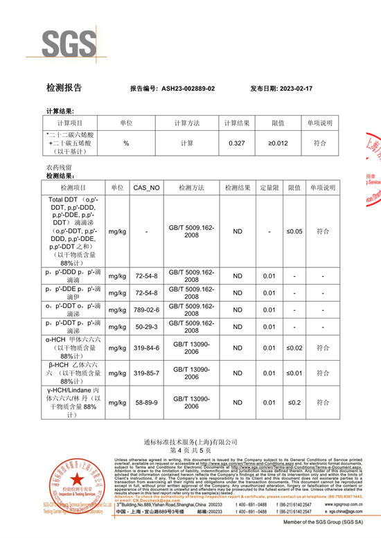 农残、维生素和脂肪酸检测报告